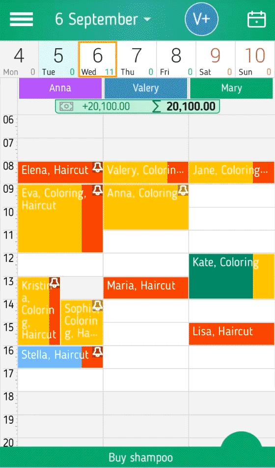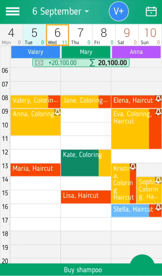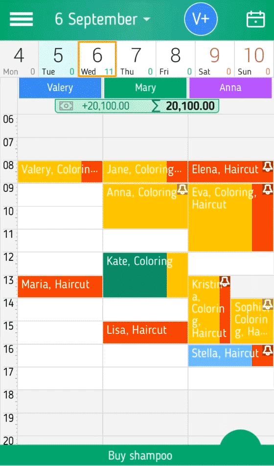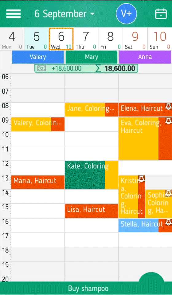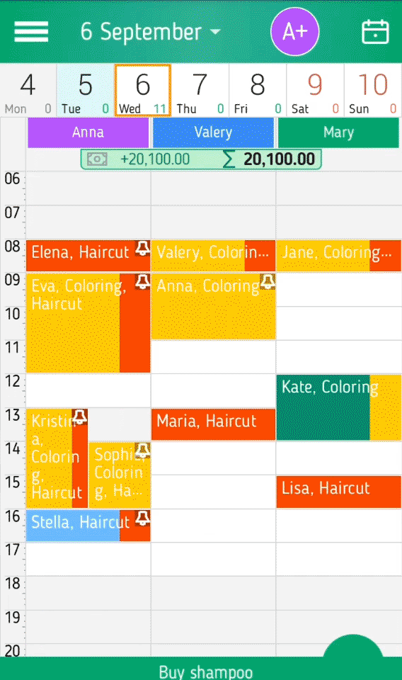 In der Zeitplan für den Tag können Sie einen Zeitplan für mehrere Personen zur gleichen Zeit zu zeigen. Für jeden Mitarbeiter wird empfohlen, ihre Farbe zu bestimmen, dann visuell wird es schneller und leichter seine Spalte und seine Ereignisse zu sehen.