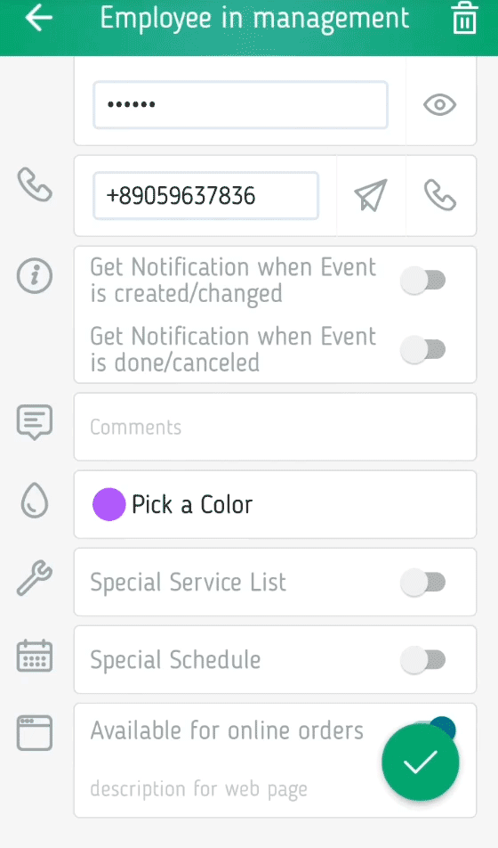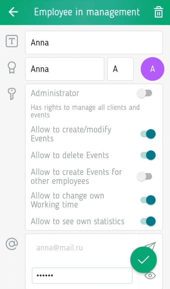 Ein wichtiger Punkt! E-Mail des Mitarbeiters ist sein Login und kann nicht geändert werden. Diese E-Mail wird über den Datensatz informiert. Seien Sie also sicher, es richtig einzugeben.