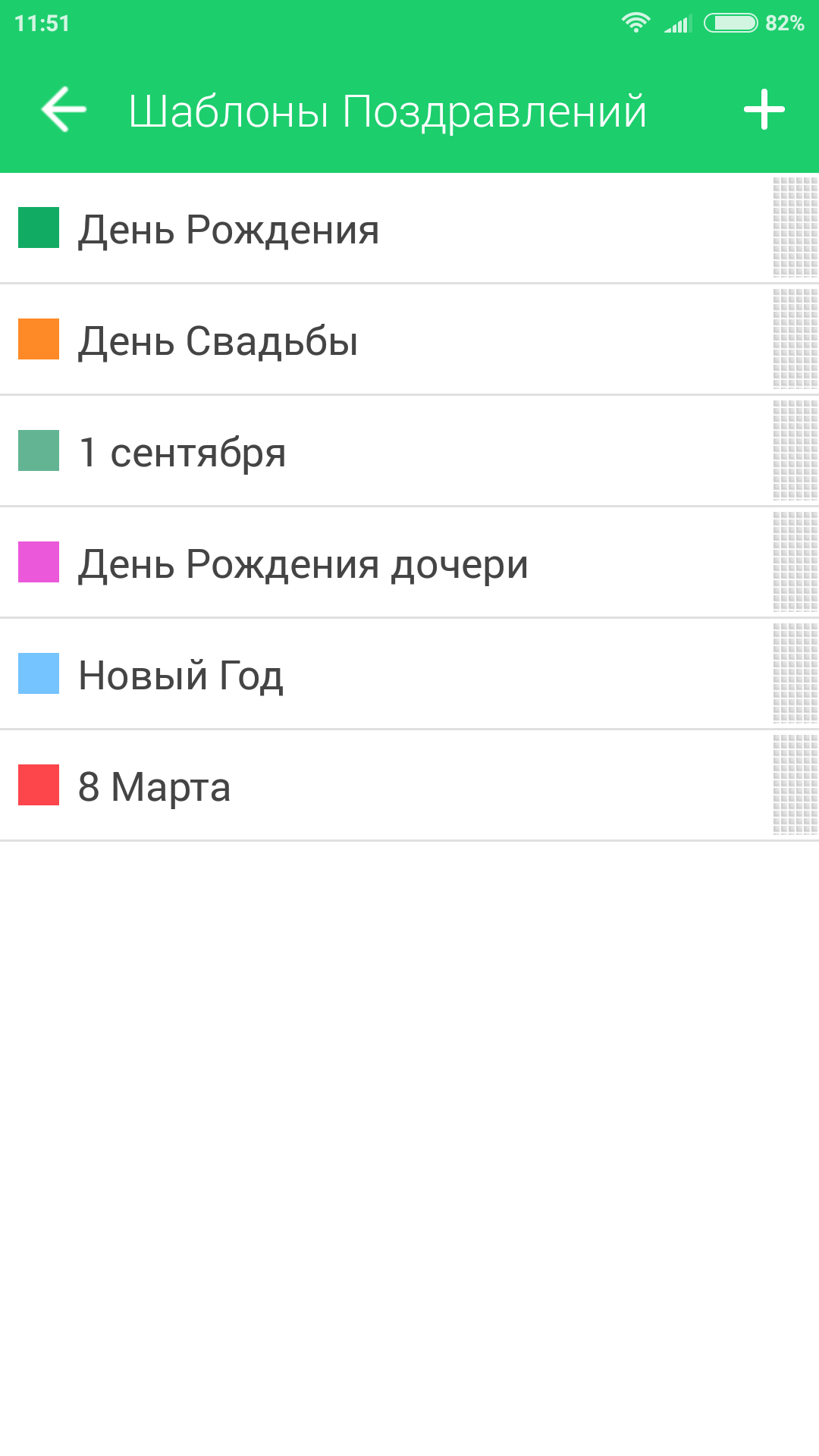 В Шаблоне (и в поздравлении) определите, нужно ли уведомлять вас о событии, нужна ли автоматическая рассылка. Не «округляйте» время для Поздравления. SMS, пришедшая ровно в 12-00 выглядит автоматической.